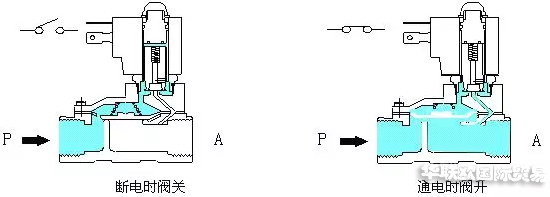 原理:通電時(shí),電磁力把先導(dǎo)孔打開,上腔室壓力迅速下降,在關(guān)閉件周圍形成上低下高的壓差,流體壓力推動關(guān)閉件移動,閥門打開;斷電時(shí),彈簧力把先導(dǎo)孔關(guān)閉,入口壓力通過旁通孔迅速進(jìn)入上腔室在關(guān)閥件周圍形成下低上高的壓差,流體壓力推動關(guān)閉件向下移動,關(guān)閉閥門。特點(diǎn):流體壓力范圍上限較高,可任意安裝(需定制)但必須滿足流體壓差條件。