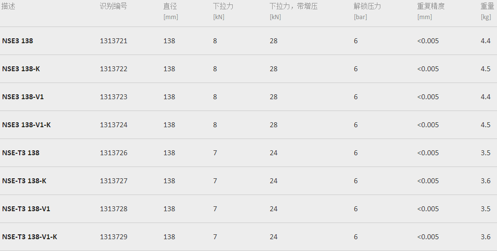 NSE3系列性能是在暢銷系列 VERO-S NSE plus 基礎上,進一步提升不僅增大了下拉力,模塊主體的尺寸穩定性也得到增強。因此,新模塊NSE3系列能夠吸收更大的傾斜力矩和橫向力。另外,還具有一項獨有功能,可以使用不同配置延長模塊。其最顯著的特征就是可選配一個彈簧驅動的錐形連接件,能在提起定位銷后立即鎖定模塊的更換接口。