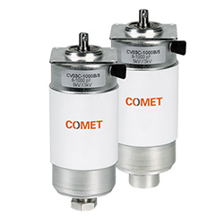 COMET電容器Power-Con設計用于典型的平板和大功率半導體應用,低電感,高電流能力,可支持10kW應用,標準化的六孔安裝法蘭,堅固的結構,電容100pF至2000pF,電壓5kV至20kV,電流45A至136A,直徑88毫米,總長度130至182毫米。
